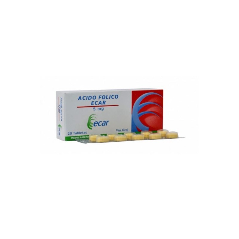 Ácido Fólico 5 mg (ENVIOS REGIONALES Y NACIONAL) Caja*20 Tabletas - Ecar